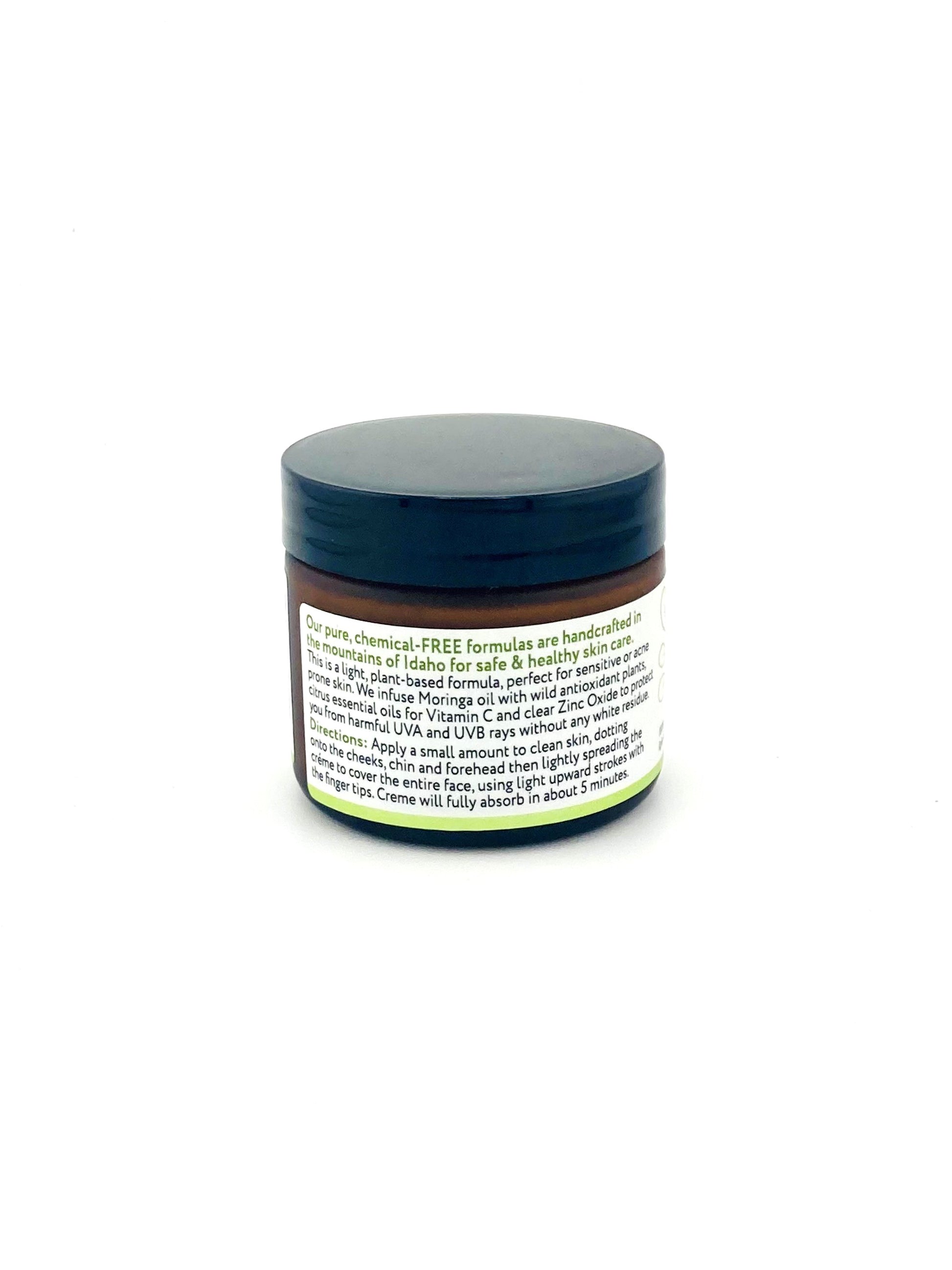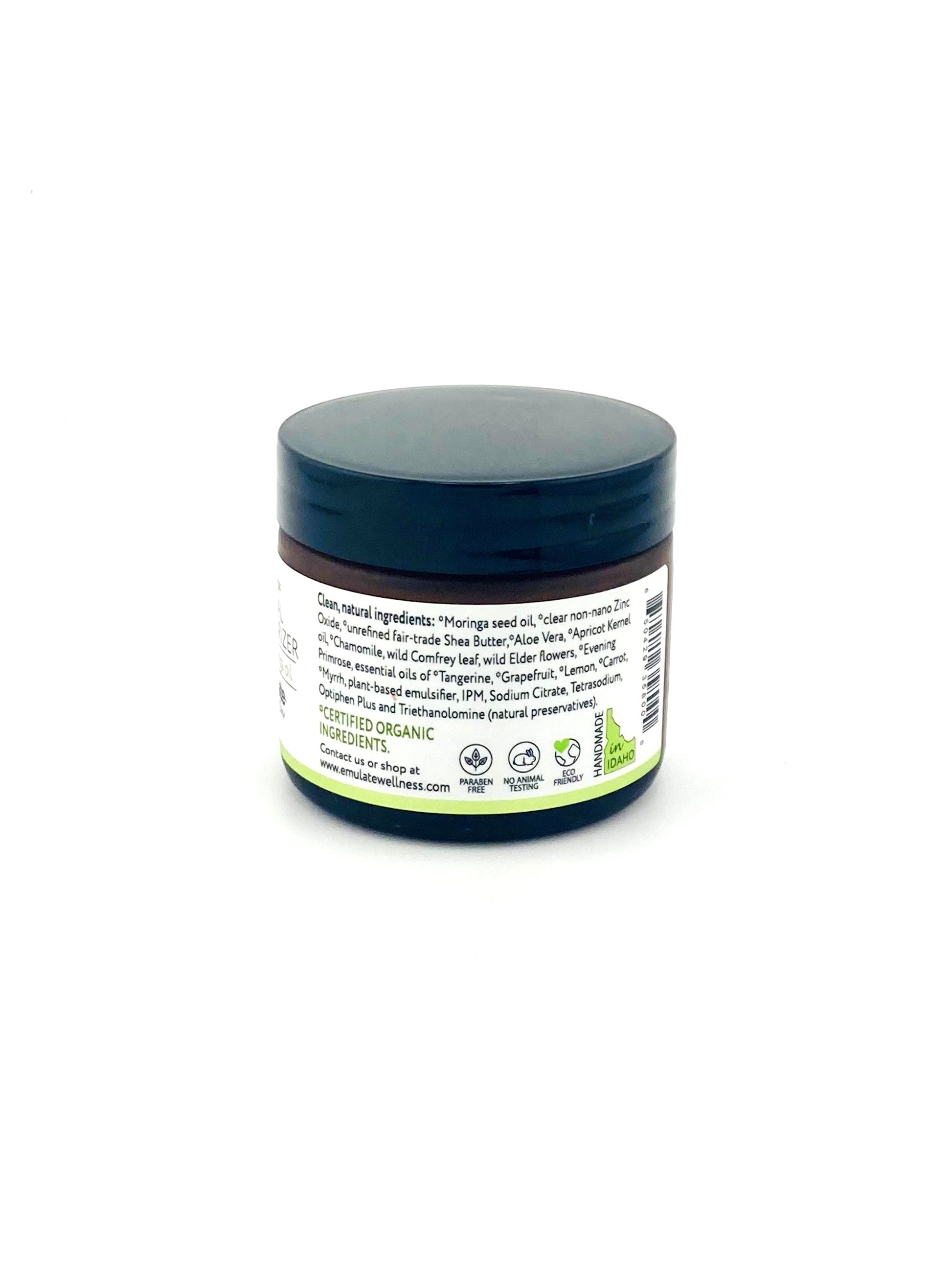 This light weight, mineral-based moisturizer protects your skin with organic clear Zinc Oxide while providing moisture retention in your skin. No white residue, and the Moringa oil is blended with organic Shea Butter to deeply moisturize without feeling oily. Excellent for oily skin.